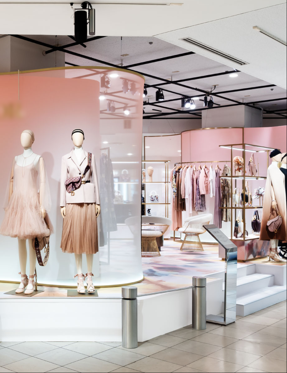 当社は、ディスプレイの企画・デザイン・プロデュース・コンサルティング・製作など、商空間の総合的な空間演出を手がけております。これまでに数々のハイブランド様と共に、魅力的で洗練された空間を創り上げてまいりました。